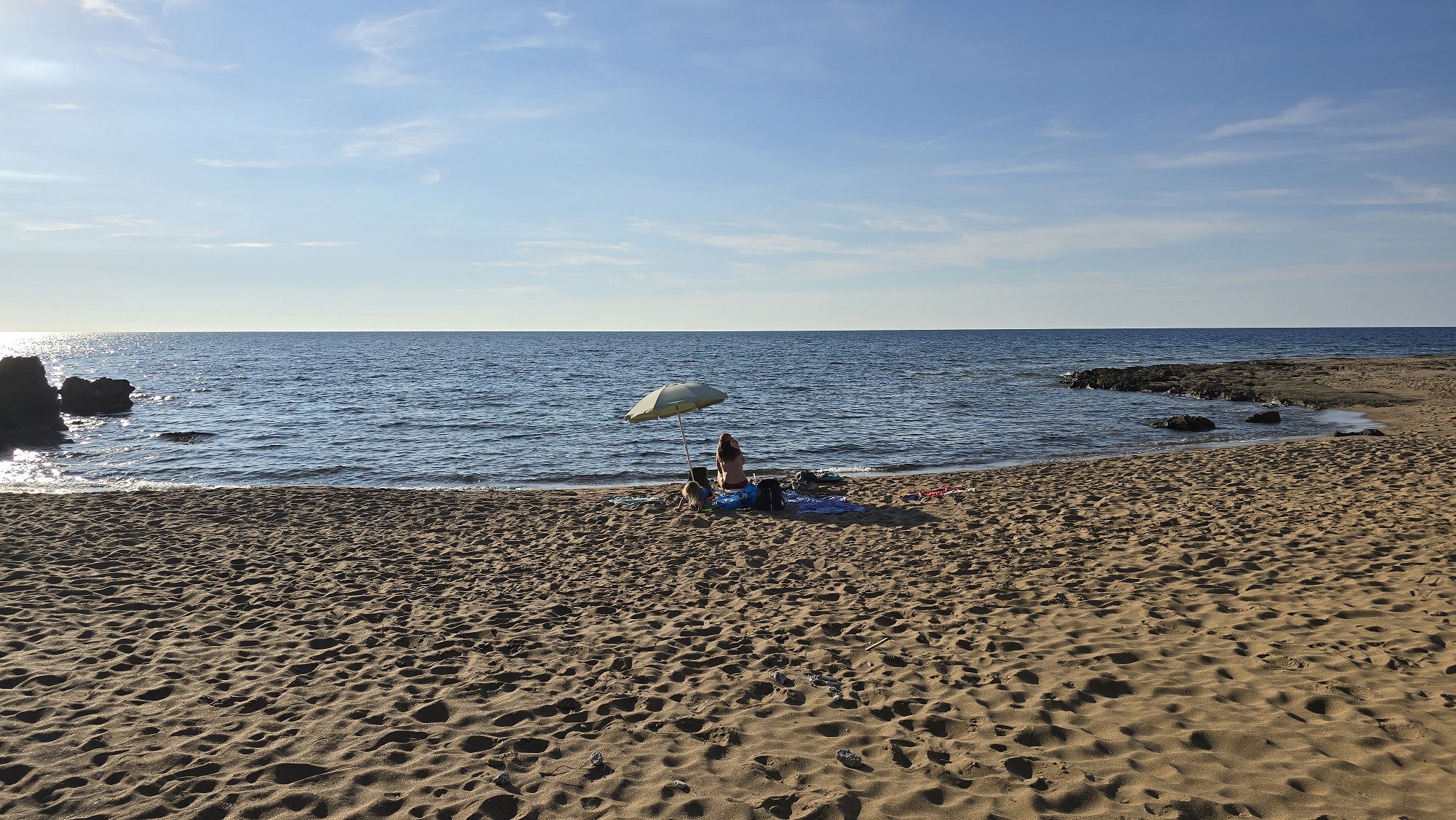 Das ist unser "Hausstrand". Eine schöne kleine Bucht mit Sandstrand - im Wasser gibt es ein paar Felsen und Steine, wir gehen meist mit Badeschuhen ins Wasser. Infrastruktur gibt es nicht - und meistens auch wenig andere Leute. Oben gibt es einen Parkplatz und dann einfach ein paar Treppen runter. Super zum Schnorcheln, aber nur bei ruhigem Meer.